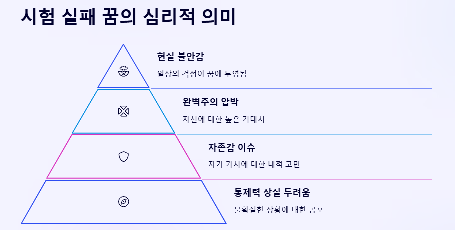 - ❌ 시험 실패: 준비 부족이나 자신감 결여를 나타내며, 현재 상황에서의 어려움을 상징합니다.