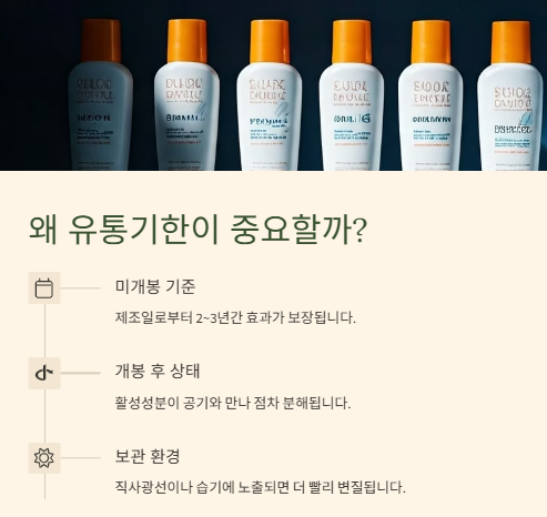 A. 개봉 후 사용 권장 기간(보통 6~12개월)으로, 유통기한과 별개로 반드시 지켜야 합니다.