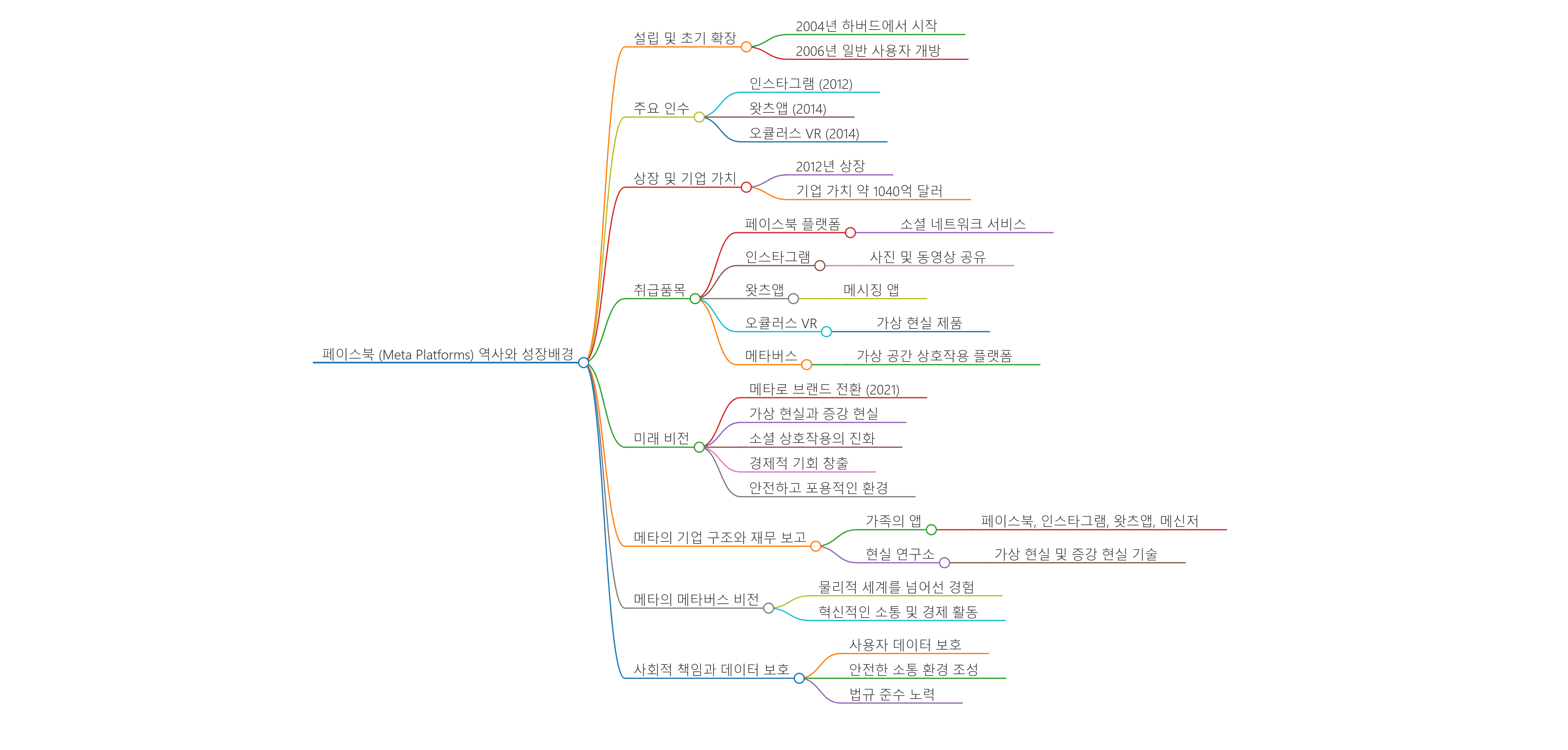 페이스북은 빠르게 성장하며 2012년에는 상장하였고, 그 당시 기업 가치는 약 1040억 달러에 달했습니다. 이후 페이스북은 인스타그램(2012년 인수), 왓츠앱(2014년 인수), 오큘러스 VR(2014년 인수) 등 다양한 기업을 인수하며 사업 영역을 확장했습니다. 이러한 인수는 페이스북이 소셜 미디어 외에도 가상 현실 및 메타버스 분야로 진출하는 데 중요한 역할을 했습니다.